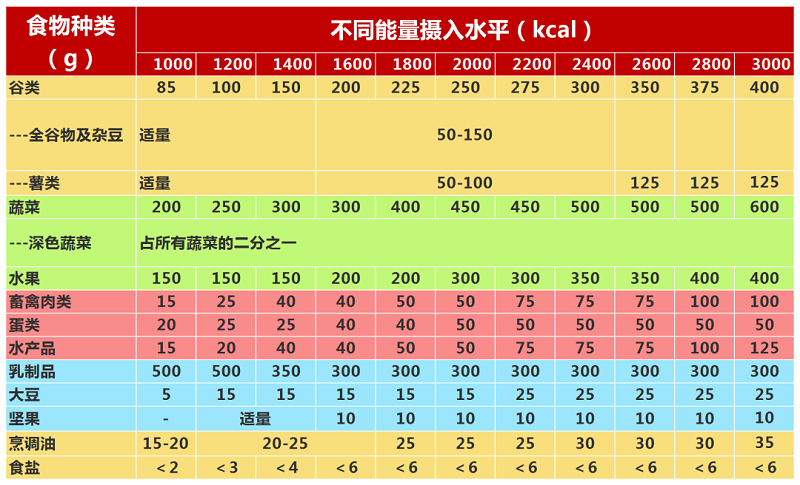 水產(chǎn)禽畜蛋類:每周至少5種,鼓勵優(yōu)選水產(chǎn)類、蛋類和禽類,畜肉類以瘦肉為主。